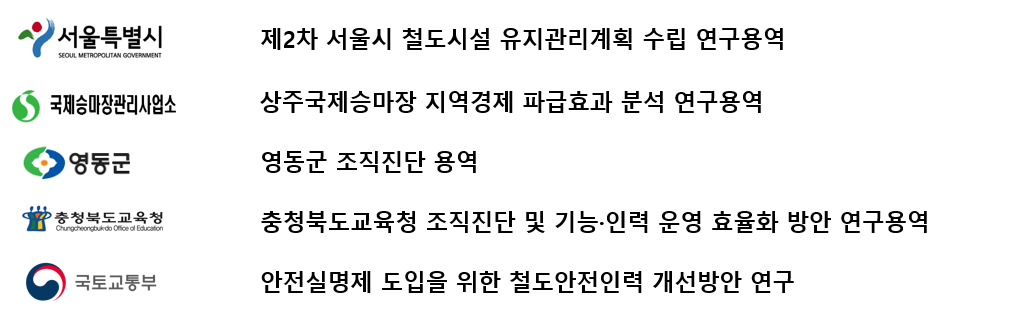· 북한이탈주민후원회 진단평가 및 발전방안 연구(통일부)· ERP시스템 구축에 따른 BSC성과평가체계 정립(한국가스공사)